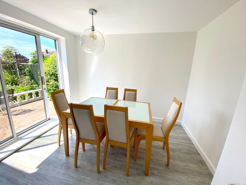 Stunning open plan kitchen/diner, fitted units, pantry cupboard, Neff double oven and hob, breakfast bar, double glazed sliding door to garden, Amtico flooring